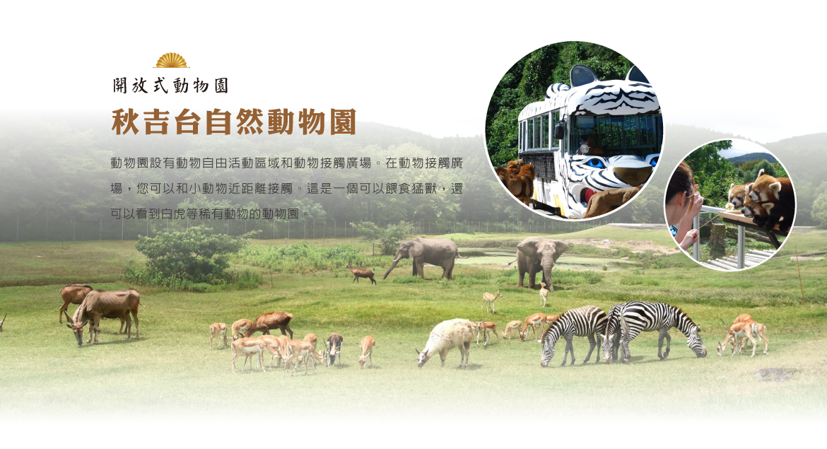 【秋吉台自然動物園“Safari Land”】動物園設有動物自由活動區域和動物接觸廣場。在動物自由活動區域,您可以坐在車裡看外面自由自在活動的動物;在動物接觸廣場,您可以和小動物近距離接觸。這是一個可以餵食猛獸,還可以看到白虎等稀有動物的動物園。 在餐廳還有小浣熊出沒喔!