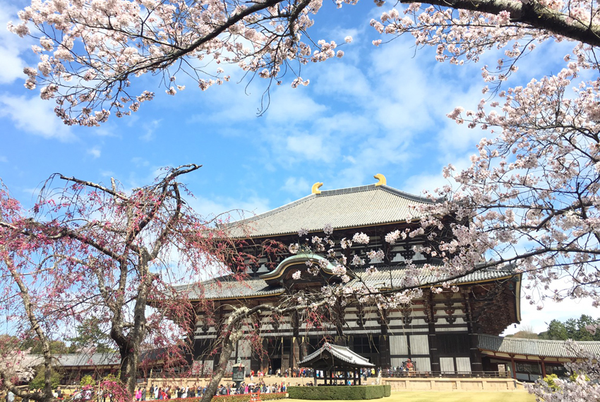 【東大寺】奈良國寶級古蹟,此寺建築於743 年,是目前全世界最大的古代木造建築物,寺內還有安置14.91米380頓重的盧舍那傳座像。
