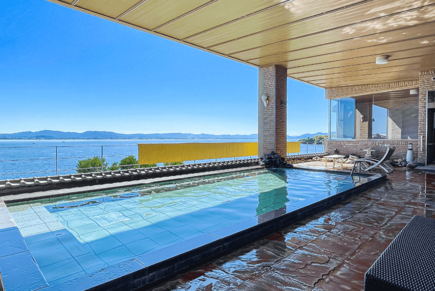 【雄琴溫泉】位於日本琵琶湖西岸的千年古湯,約1200年前由比叡山開山祖師最澄大師所開鑿,泉質為pH值9.0的高鹼性單純泉,以「美肌之湯」聞名,具有美肌、舒緩身心、恢復疲勞的效果。