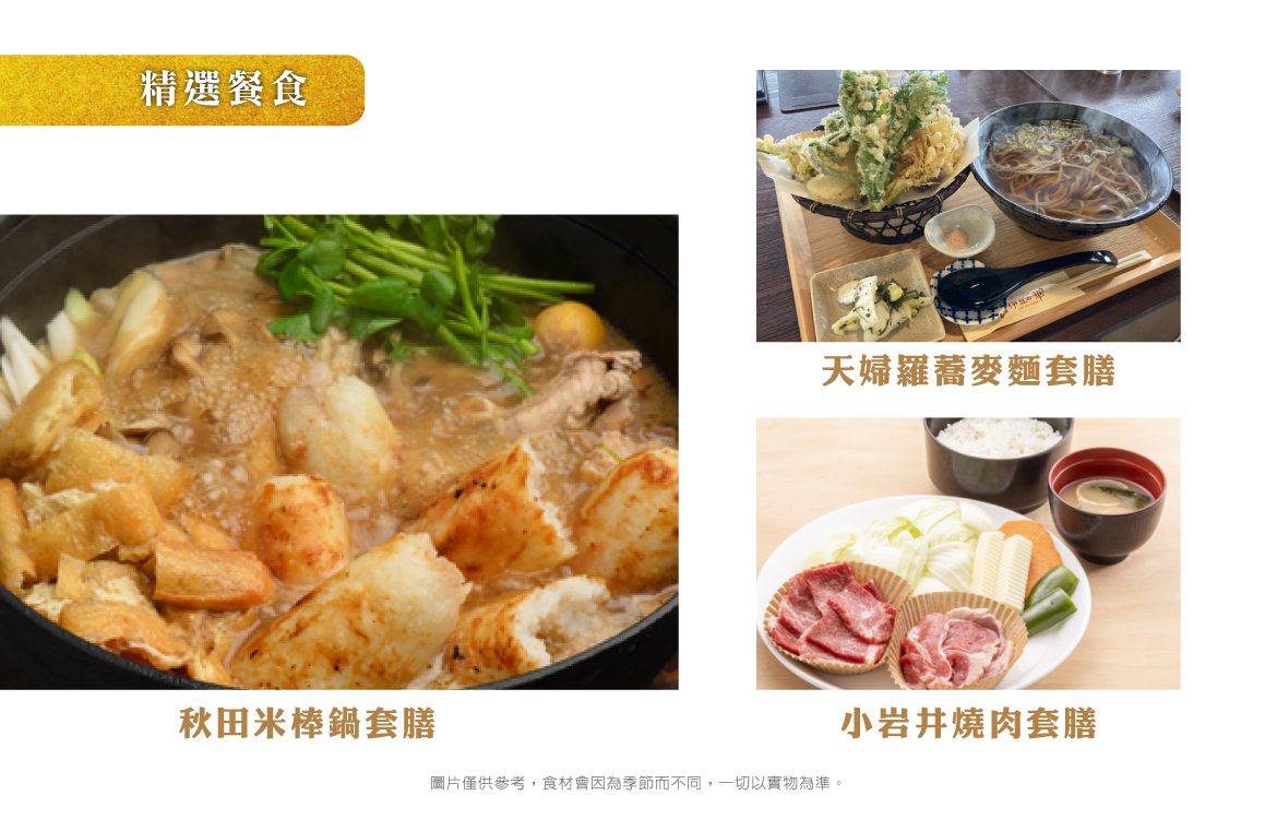 ※素食旅客請注意:由於疫情後日本餐廳人力短缺,廚師主要工作為提供餐廳常規餐食,對於素食恐無法精心料理,故須以餐廳所提供之內容為主,餐廳不接受現場指定或增加菜餚(例如炒一盤青菜等),如擔心料理不合口味,敬請旅客自備罐頭素食備用,敬請理解配合,謝謝。
