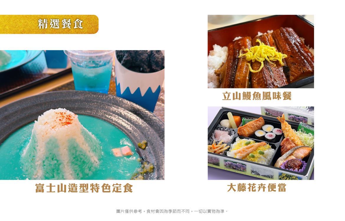 ※素食旅客請注意:由於疫情後日本餐廳人力短缺,廚師主要工作為提供餐廳常規餐食,對於素食恐無法精心料理,故須以餐廳所提供之內容為主,餐廳不接受現場指定或增加菜餚(例如炒一盤青菜等),如擔心料理不合口味,敬請旅客自備罐頭素食備用,敬請理解配合,謝謝。