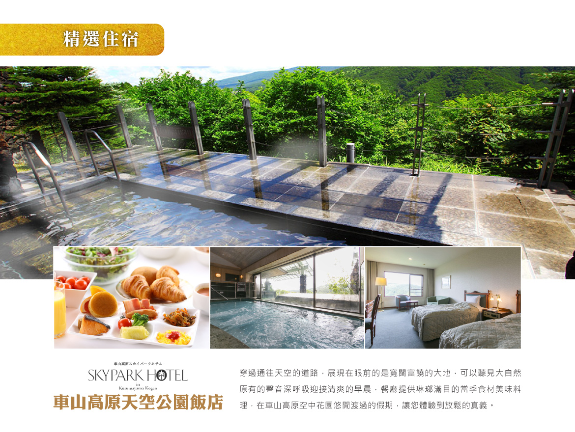 ※行程及餐食將會視情況(如季節、預約狀況、觀光地區休假及住宿飯店地點)調整。