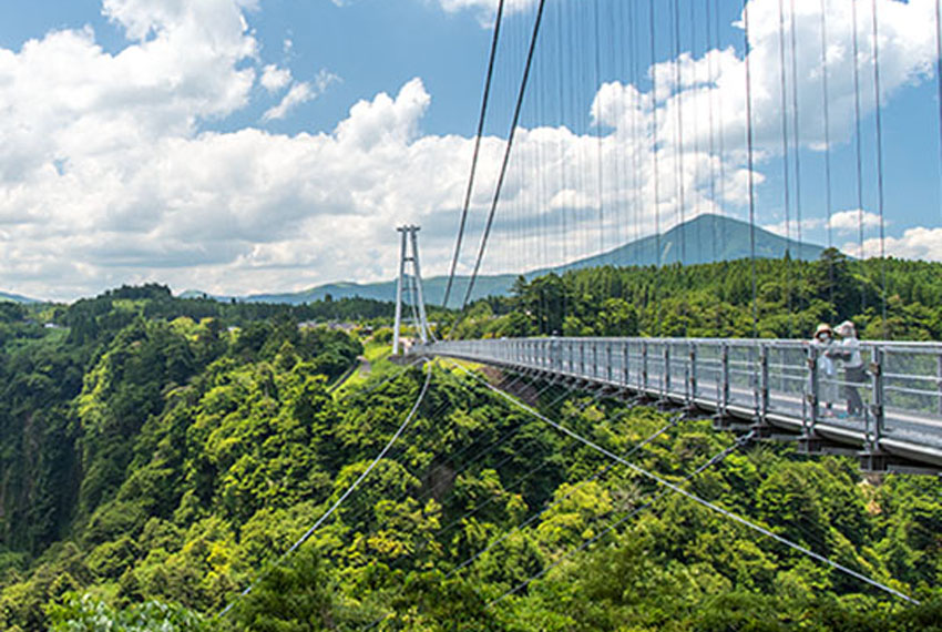 【九重夢大橋】位於日本大分縣,全長390公尺、高173公尺,曾是日本最長的人行專用吊橋,以震撼的「天空漫步」體驗聞名。橋上可飽覽「震動之瀑」與九醉溪四季美景,是九州著名的高空景點,也是當地自主募資興建的夢想之橋。