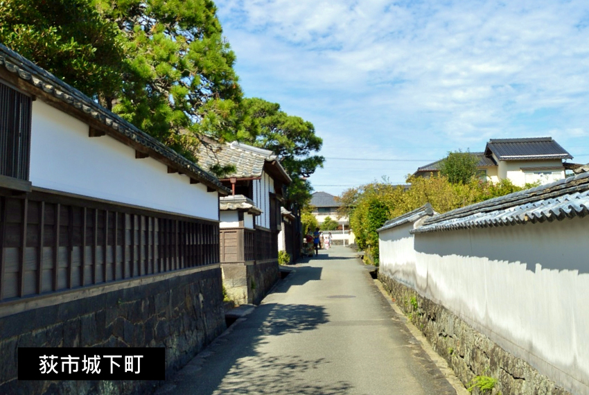 【萩市城下町】保存極為完整的江戶時代城鎮,由長州藩主毛利輝元於1604年建立。該地區以「萩城城下町」之名列為世界遺產「明治工業革命遺蹟」之一,擁有古老的白牆、黑板牆、武士宅邸、迷宮般「鍵曲」道路,被譽為「露天博物館」。