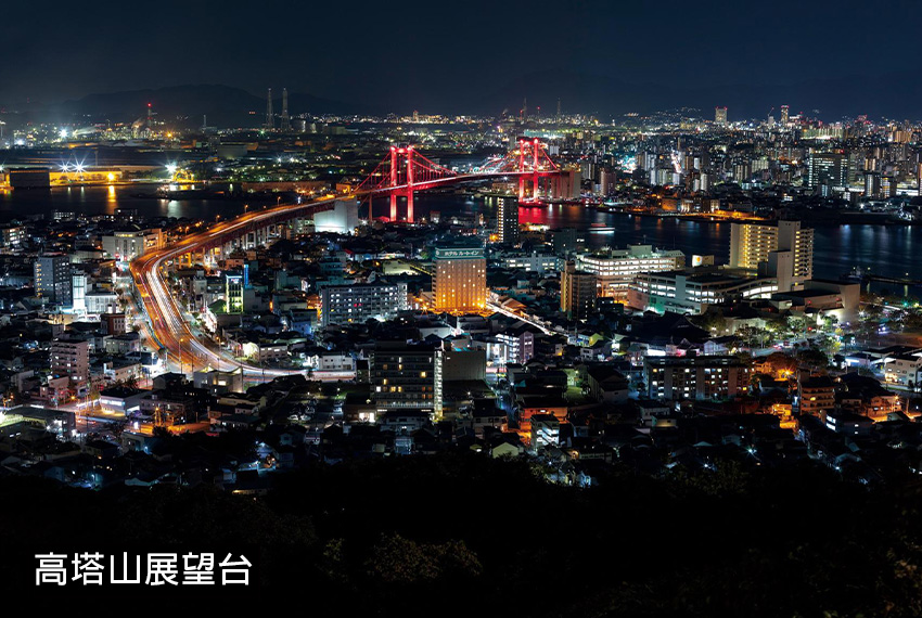 【高塔山展望台】高塔山公園的夜景,若戶大橋的工業夜景、洞海灣的暮色盡收眼底,更被列為「日本夜景遺產」,從山頂的展望台可以看到北九州市的全景。夜晚燈光搭配洞海灣的風景,感覺就像黑色天鵝絨上散落著無數的寶石,超浪漫。