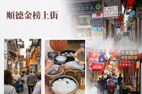 【順德金榜小吃一條街】順德金榜美食街位於佛山市順德區,是當地著名的美食集中地,以地道順德風味和熱鬧市井氛圍吸引眾多食客。街道不長,卻匯聚了豐富多樣的傳統小吃與創新料理,從雙皮奶、魚生、牛乳煎堆,到各式海鮮、燒味與糖水,樣樣誘人。夜幕降臨後燈火通明,人潮絡繹不絕,是體驗順德“世界美食之都”魅力的絕佳場所。