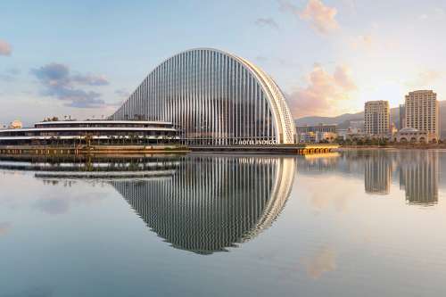 【天沐琴臺】珠海橫琴的天沐琴台是坐落於天沐河中心的標誌性建築,其外型巧妙融合了「琵琶」與「古琴」的流線美感,宛如水面上跳動的音符。這座綜合性地標涵蓋了規劃展示中心、文創藝術空間及景觀露台,是俯瞰天沐河與橫琴城市天際線的絕佳視點。夜晚時分,建築與璀璨燈光映照在粼粼波光中,盡顯現代建築藝術與水鄉景觀交織的靈動魅力,是攝影愛好者與旅客造訪橫琴時必拍的打卡聖地。