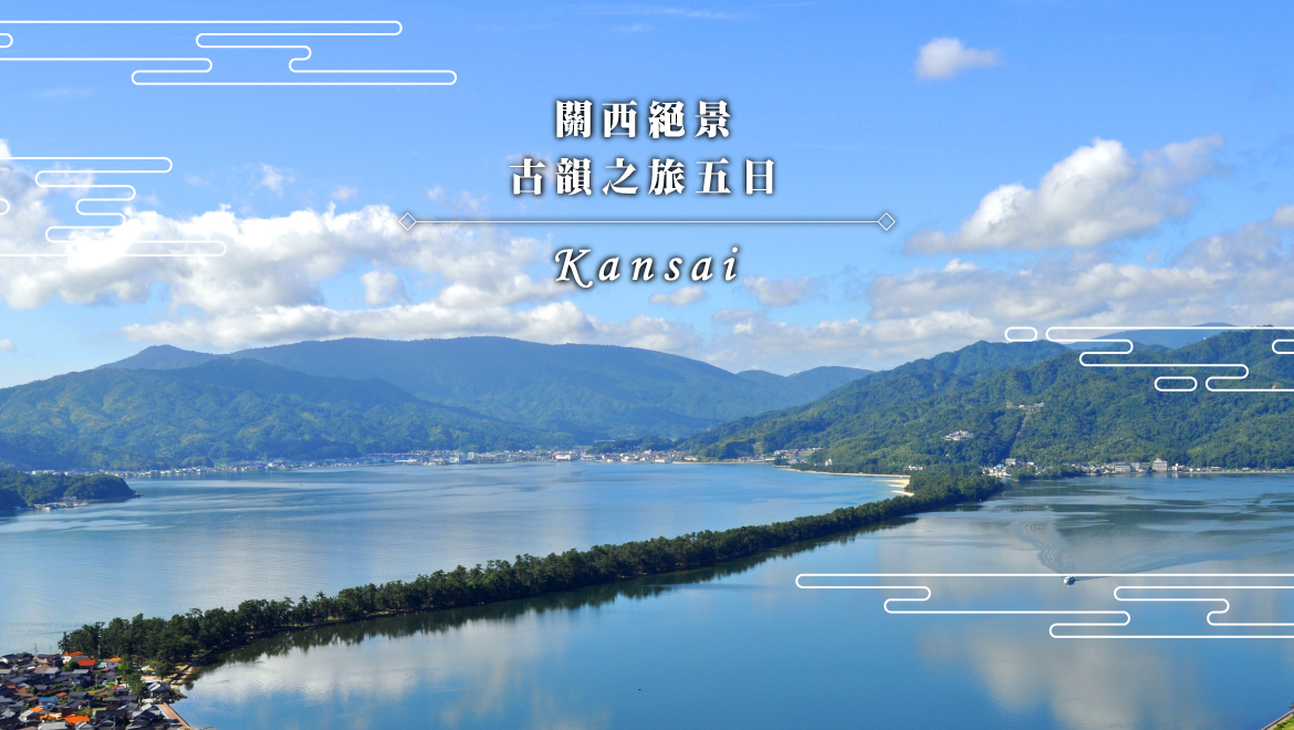 【天橋立】位於京都府北部的風景勝地,在全長約3.6km的沙洲上,種植了約8000株的松樹,排列在沙洲兩旁連綿不斷,與宮城縣的松島、廣島縣的宮島並稱為日本三景。相傳天橋立是神明往來天庭與人間的橋樑,由于其形狀看似天上舞動的橋樑,俯首從雙足之間觀賞之,猶如升天之龍,所以取名為天橋立。