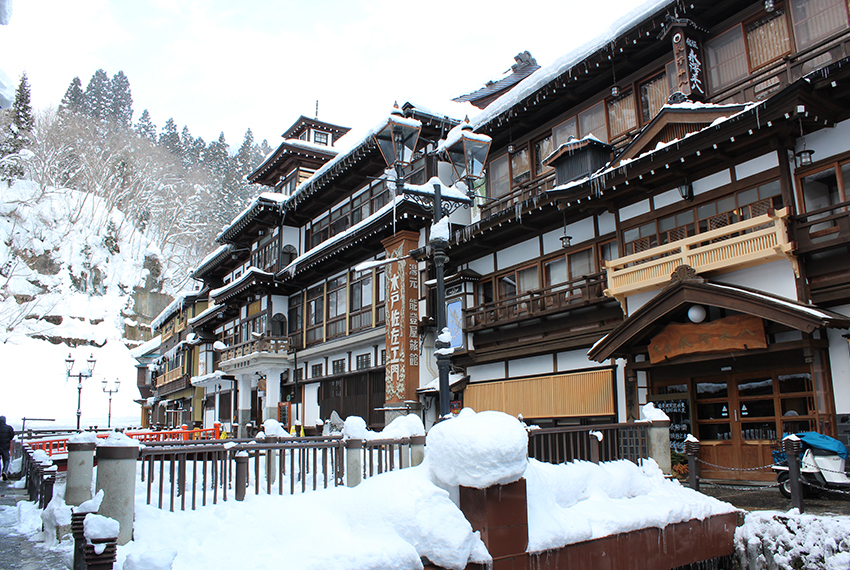 【銀山溫泉】充滿日式懷舊風情的溫泉鄉銀山溫泉,這裡擁有美麗的自然景色,大量保留大正時代建築風格的老式建築,處處散發著浪漫氣息。這裡一年四季都有不同的美景,在漫長的夏日午後,可以隨意穿著浴衣,在田園詩意的街頭慵懶漫步;冬季皚皚白雪覆於屋宇,煤氣燈的柔光更顯迷離,令人久久不能忘懷。